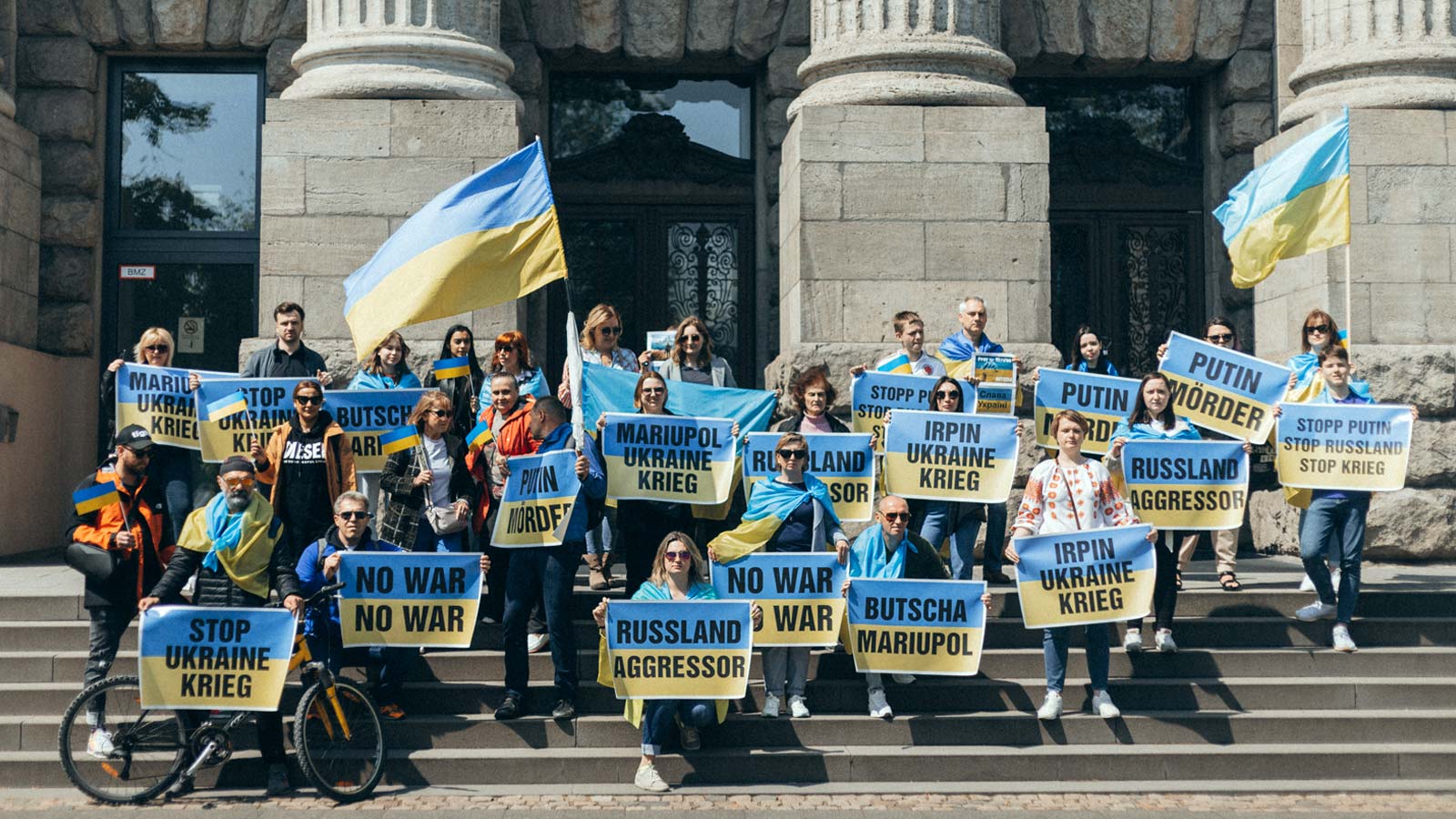 Am 8 Mai 2022 in der Nähe von Kölner Dom hat sich spontan eine kleine Gruppe der friedlichen Ukrainer mit ukrainischen Fahnen an einer Stelle des geplantes pro-russischen Autokorsos positioniert. Die Strecke des Autokorsos wurde von der Polizei außerhalb des Ortes umgelegt. Noch ein Beweis, dass auch kleine Gruppen große Ziele erreichen können.